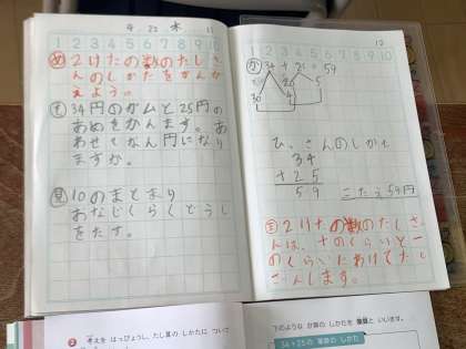位を分けて計算することやひっ算の仕方を新たに学習しました。