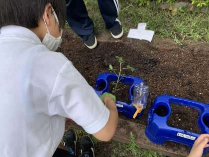 2年生では生活科「ぐんぐんそだて、みんなのやさい」の学習で、ミニトマトを育てます。