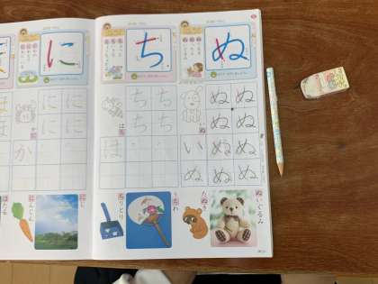 文字は、読んだり書いたりすることで身についていきます。お家でも新しく習ったひらがなを会話の中で取り入れていただくなど、触れる機会を多くもっていただけると子どもたちの意欲もさらに増すことと思います。
