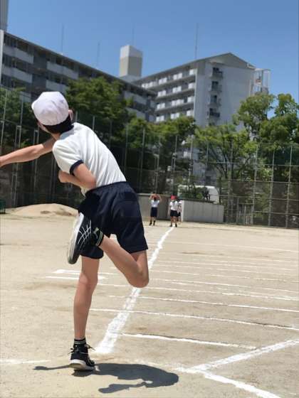 6年生は、50m走・ソフトボール投げ・立ち幅跳びを行いました。