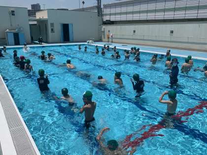 コロナの影響で2年生は昨年入れず、友渕小学校で初めてプールに入りました。
