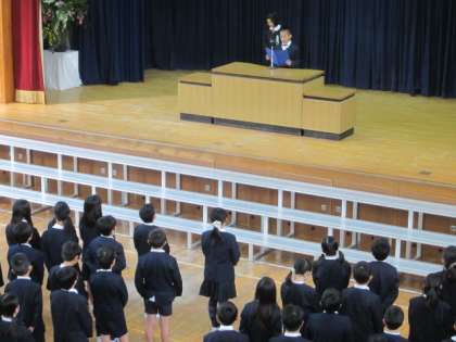 今日は3学期最後の日、本校・分校でそれぞれ修了式が行われました。本校では19日に6年生が卒業し、4年生・5年生だけの修了式になりました。校長先生から4年・5年の代表児童に修了証が渡され、4年・5年の代表児童がこの1年間学習で頑張ってきたことを発表しました。最後に全員で元気よく校歌を歌って修了式が終わりました。