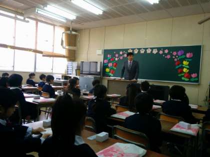 本校での式の後、分校に移動して教室に行きました。