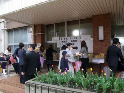 4月7日、桜の花が咲く中、元気いっぱいの1年生の子どもたちが入学してきました。