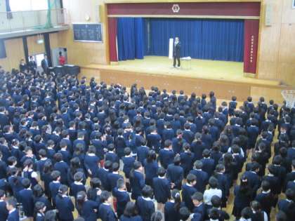 始業式では校長先生から「『千里の道も一歩から』というように自分の目標に向かって一歩ずつ頑張っていきましょう」という話がありました。
