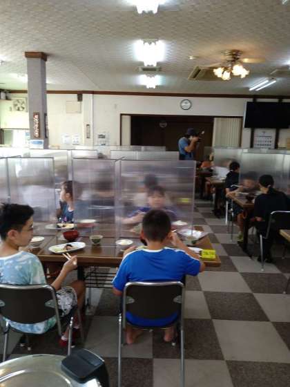 みゆき荘の朝食風景です。みんなすっかりたくましくなって、おかわりに並ぶ人も増えてきています。