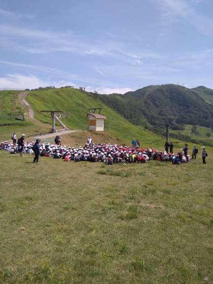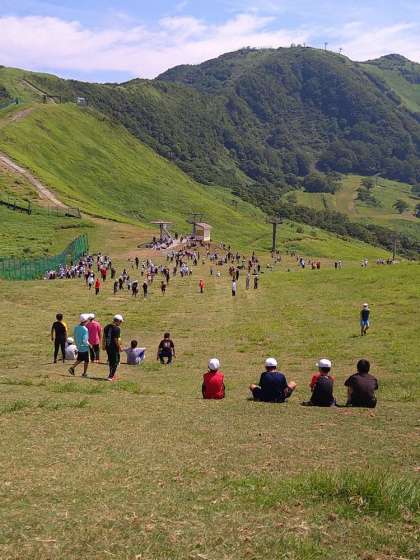 頂上を少し降りたところで遊んでいます。鬼ごっこにリレー……。子どもたちの体力は無限です。