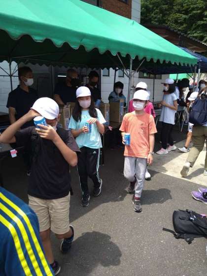 無事に下山し、ジュースを飲んでいます。やりきった後の味は格別です。(送信環境の関係で遅れてアップされている記事があります)