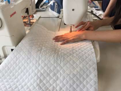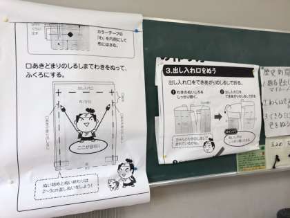 子どもたちは「返しぬいせな」「もっとゆっくりとまっすぐに」とお互いに声を掛け合いながら、使い慣れないミシンを使っています。