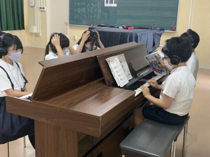 普段は教室で音楽の授業をするのですが、音楽室での音楽の授業は普段とはまた違い、子どもたちも楽しそうに学習に取り組むいことができました。