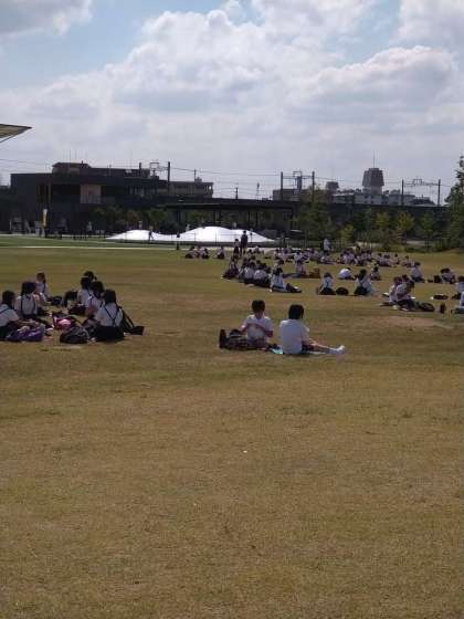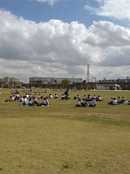 午前の活動を終え、お弁当を食べています。とても広い場所なので、十分に間隔をとりながら食べることができます。