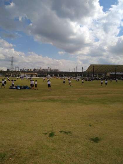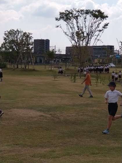 お弁当の時間を終え、広い場所で楽しく遊んでいます。芝生も気持ちいいようで、寝転んでいる子どももたくさんいます。