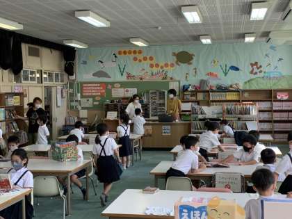 緊急事態宣言が解除され、図書ボランティアグループ「よむとも」さんと図書館補助員さんによる昼休みの図書館開放が再び始まりました。