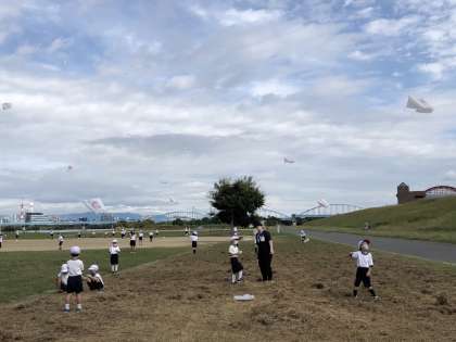 天候にも恵まれ、1年生が河川敷公園で校外学習を行いました。