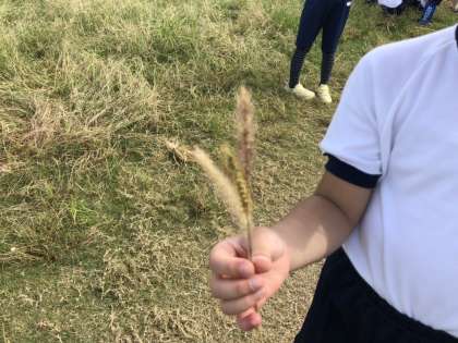 草むらにでて、バッタやねこじゃらしなど「先生、みつけたよ」と教えてくれました。