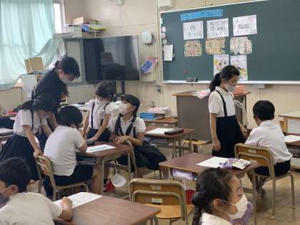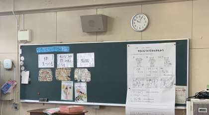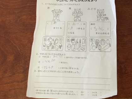 子どもたちは野菜について考えたり、食べることでどのようなことがあるかを学びました。また、苦手な野菜を食べるときどうしているかを友だちに話して交流を深めていました。