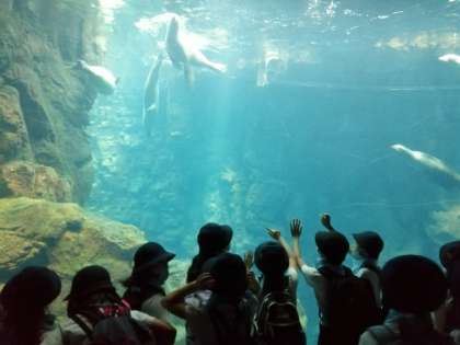 ペンギンやアシカが水中を泳ぐ様子を見て、「思ったよりずっと速い!」と感想を聞かせてくれました。