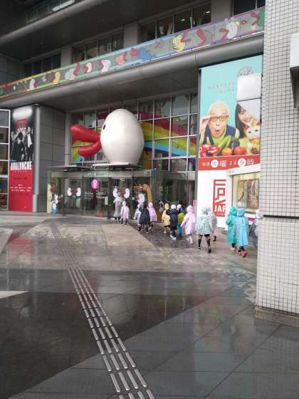 キッズプラザに到着しました。楽しそうな建物を前に子どもたちも喜んでいます。