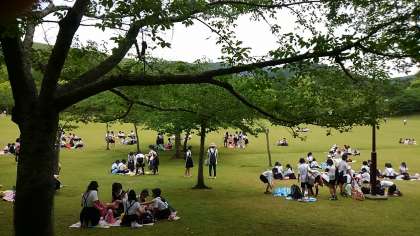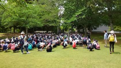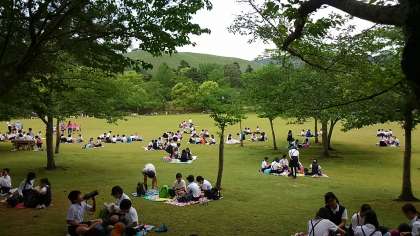 ようやく、お楽しみのお弁当です。奈良公園内の芝生の上で友だちと一緒にお弁当を食べました。