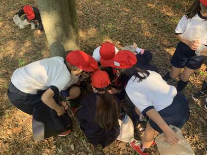 学校近くのパンダ公園に落ち葉やドングリを拾いに行きました。