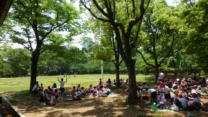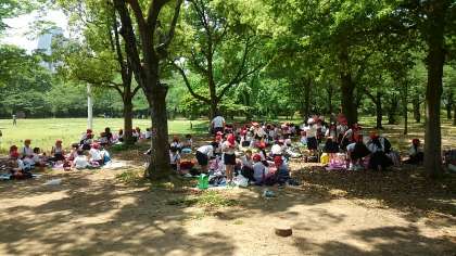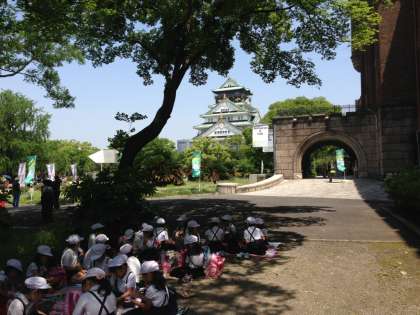 待ちに待ったお弁当タイムです!!大阪城を眺めながら木陰で楽しみのお弁当を食べています。