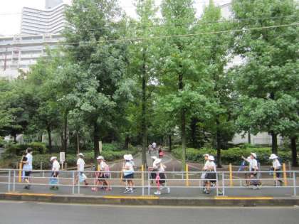 そのため前もって同じマンションや同じ方向に帰る子どもたちで各学年ごとにグループを組んで下校する訓練をしました。