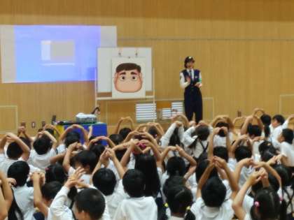 1年生は今日の2時間目、都島警察の方に来ていただき、防犯教室を行いました。
