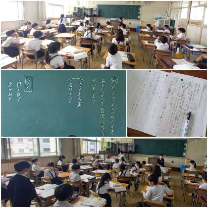 『風のゆうびんやさん』に出てくる登場人物の声を思い浮かべて音読発表会をしています。