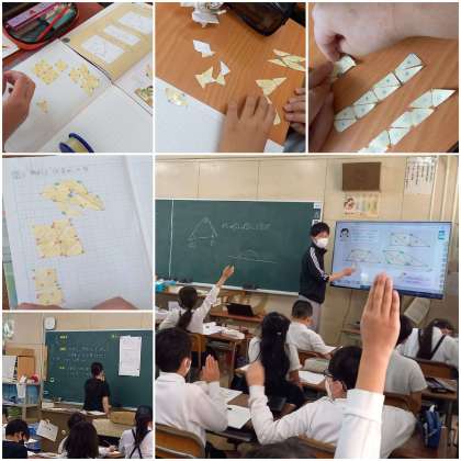 三角形の内角の和について調べています。
