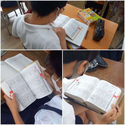 国語辞典を使って、いろいろな言葉の意味を調べています。