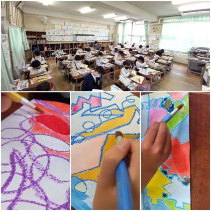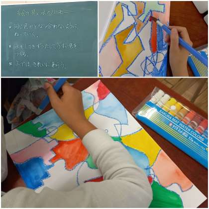 隣は同じ色にしないというルールを守って、ていねいに色を塗っています。