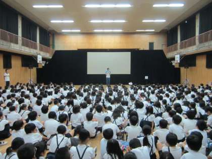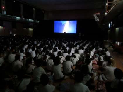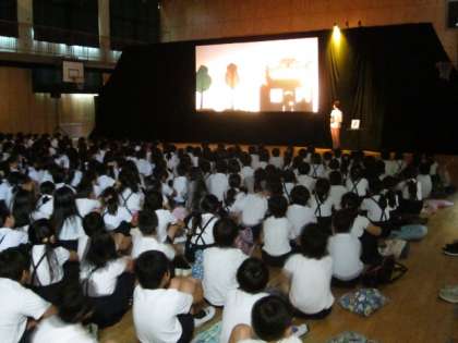 児童数が多いため、劇鑑賞会を2日間にわたっておこないました。子どもたちは、それぞれ劇の話の中にひき込まれ、楽しそうに最後までしっかりと見ていました。