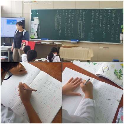 ぼく・わたしが見つけた『たんぽぽのひみつ』をノートに書いています。