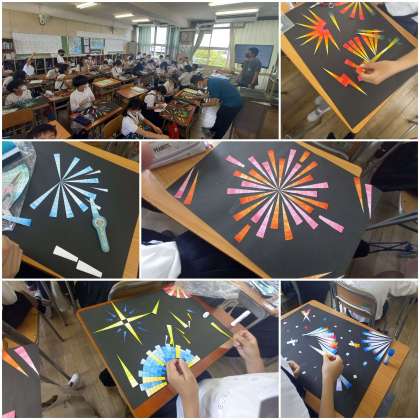 黒画用紙をキャンバスに見立て、デザインを考えています。 どんな作品に仕上がるのか楽しみです。