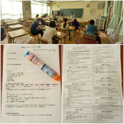 養護教諭が中心になって、食物アレルギーロールプレイ研修を行いました。