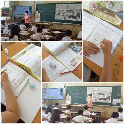 子ども達は、ごみの種類や週に何回ごみ回収があるのか等について、日々の生活を振り返ったり、資料を参考にしたりして話し合っています。