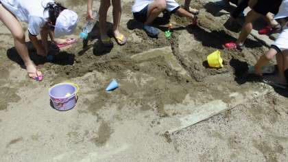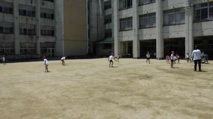 生活科「なつをもっとたのしもう」の学習でどろあそび、みずあそびをしました。砂場で水の流れをつくったり運動場に水でお絵描きをしたりしながら楽しく過ごせた時間になりました。