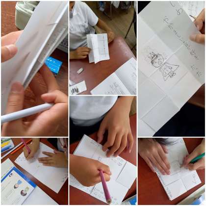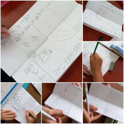 子ども達は、繰り返し教科書を読みながらチェンジカードを作っています。