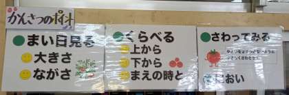 教室には、子ども達が毎日お世話をしている『ミニトマト』の観察のポイントが掲示されています。