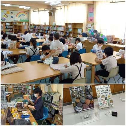 学校図書館司書が、課題図書の整備をしています。