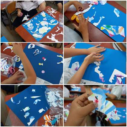 海の中や日本地図など…子ども達の豊かな想像力が発揮されています。