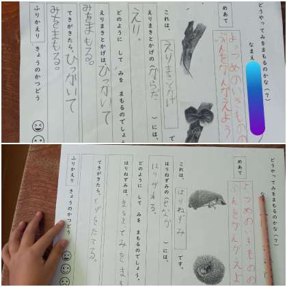 写真から想像した身の守りかたを、文に表していきます。