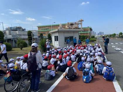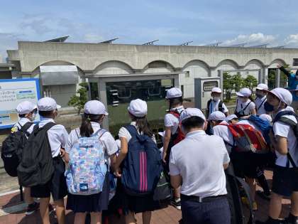 4年生の児童は暑い中ですが、真剣に話を聞いて学習しています。