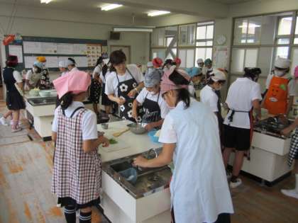 今日の調理実習の経験をいかして、お家の方でも、家族の一員として、さらに家事分担の一翼を担ってほしいものです。