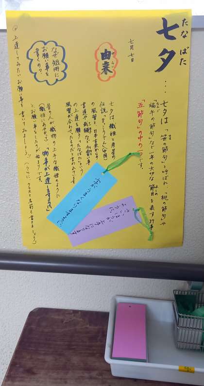 自分の目標や願い事を短冊にかいて、笹につけてみましょう。