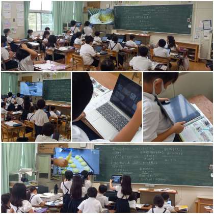 タブレット端末を使って、学習した内容をまとめる活動に入っています。