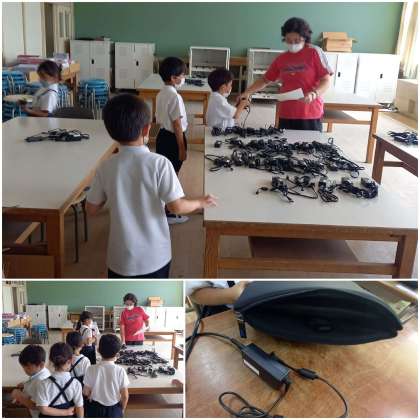 本日、1・2年生がタブレット端末を持ち帰っています。
