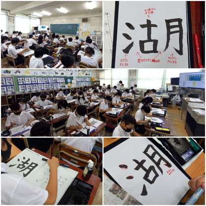1枚目に書いたものと手本を見比べ、直した方がよい点を赤で書いています。