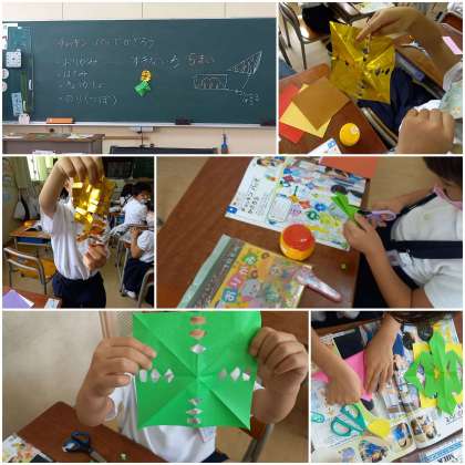 折り紙とはさみを使って