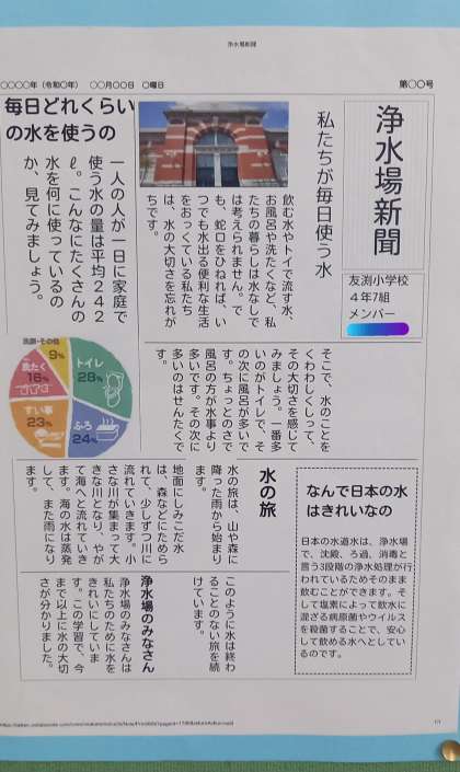 社会科や総合で学習したことを、一人一台学習?用端末を使って新聞にまとめています。